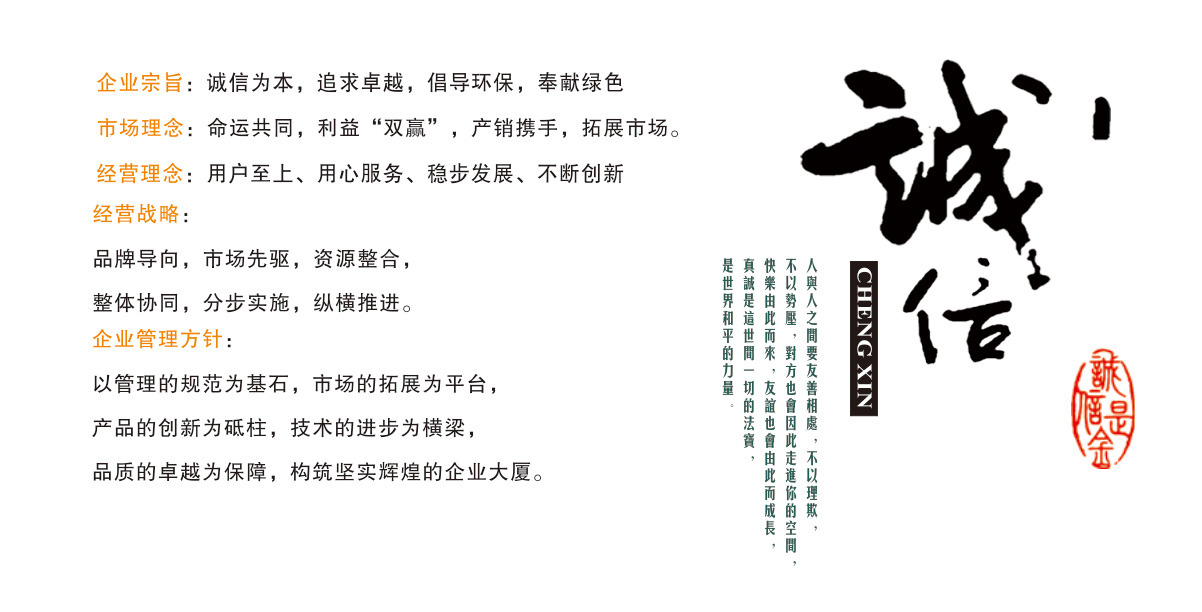 創新是企業的靈魂,誠信是企業的生命。本公司以誠信、智慧和實力期盼與您攜手共進,共謀發展!